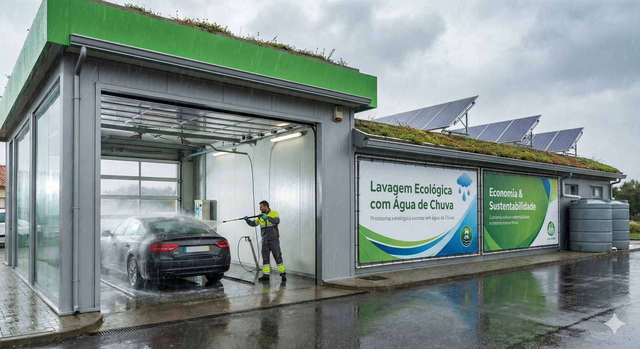 Muitos empresários tentam usar água de chuva e desistem. O motivo? A água bruta mancha a pintura dos carros (no caso de lava-rápidos) ou amarela as roupas brancas (no caso de lavanderias). Isso acontece porque a chuva lava a poeira, fuligem e poluição do telhado. Uma cisterna comum apenas armazena essa água suja.
